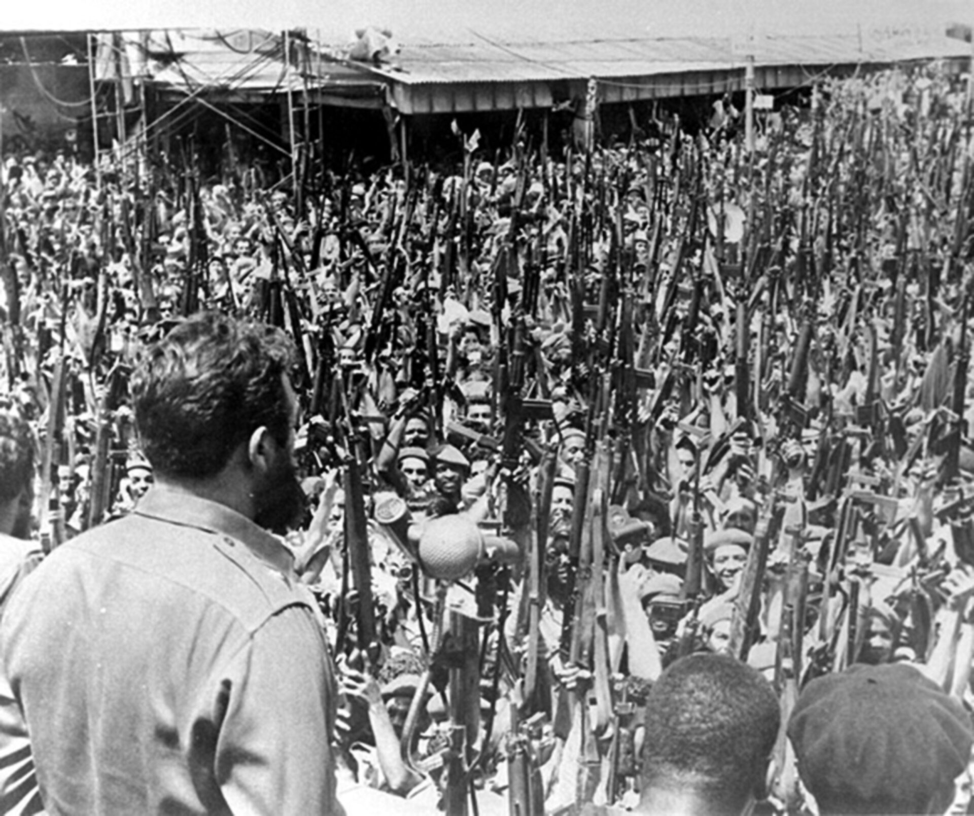 ¡Y que esa Revolución socialista la defendemos con esos fusiles!; ¡y que esa Revolución socialista la defendemos con el valor con que ayer nuestros artilleros antiaéreos acribillaron a balazos a los aviones agresores!