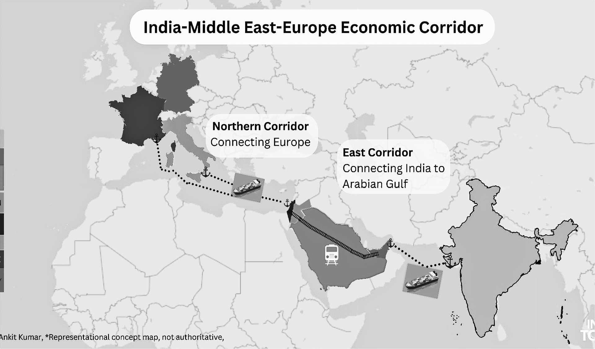 Proyecto IMEC quiere conectar Asia occidental y central –especialmente mediante una India alineada con EE.UU.- y sus recursos, con Europa, a través de formaciones estatales “aliadas” (subordinadas) a USA, la cual dispone a discreción de esos recursos y entorpece que otros puedan hacerlo libremente o tengan protagonismo en las redes infraestructurales de los flujos energéticos.