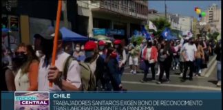 En el marco del paro nacional de actividades trabajadores sanitarios de chile continúan con las movilizaciones para exigir mejoras salariales al gobierno. Paola Dragnic...