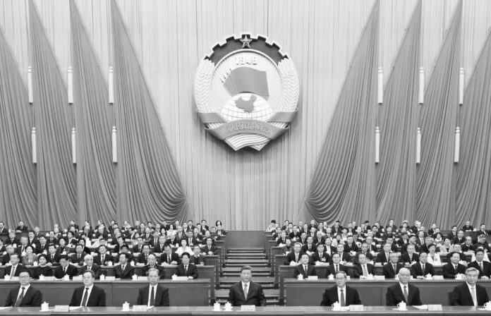 El 4 de marzo de 2026, la cuarta sesión del XIV Comité Nacional de la CCPPCh inició en el Gran Palacio del Pueblo, en Beijing, China, con la asistencia del presidente Xi Jinping y líderes como Li Qiang, en la tribuna principal. Foto: Xinhua