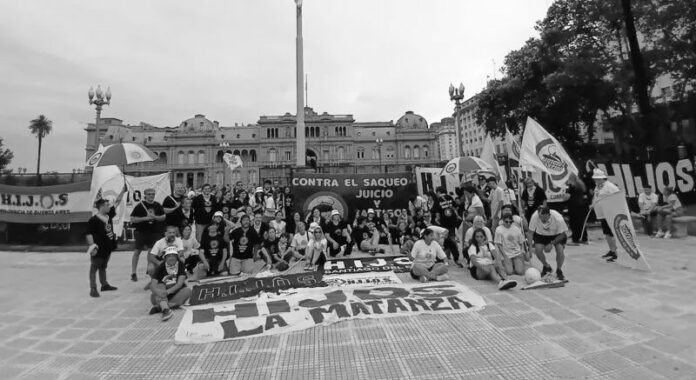 Al alegar que Milei es «el enemigo de la patria y el garante de la impunidad», HIJOS precisó que es además «un servidor extranjero de EE.UU., Israel e Inglaterra, de las élites corporativas que llevan adelante un genocidio a cielo abierto en Gaza».