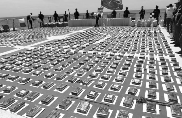Un gigantesco alijo de cocaína, preveniente de Colombia, capturado por la Marina de Venezuela. Foto FANB de Venezuela