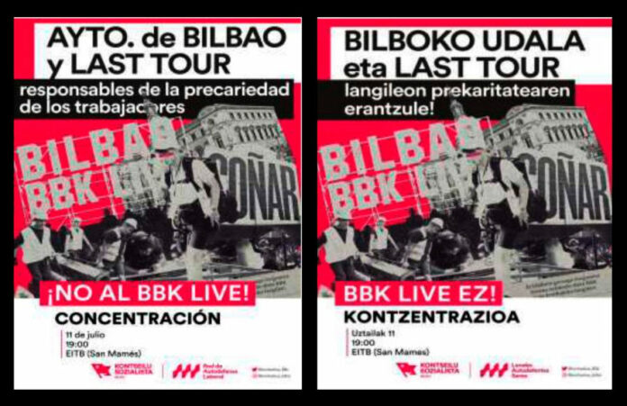 La Red de Autodefensa Laboral (Laneko Autodefentsa Sareak -LAS- en euskera) denunciaba la explotación laboral que la empresa organizadora (Last Tour) y el Ayuntamiento ejercían sobre los y las trabajadoras durante los días del evento. Ahora es más de lo mismo, solo que el macrofestival BBK Live se llevará a cabo en Bilbao y, además de la misma empresa, el Consistorio será el de la ciudad bizkaina mencionada.