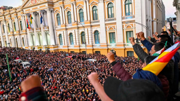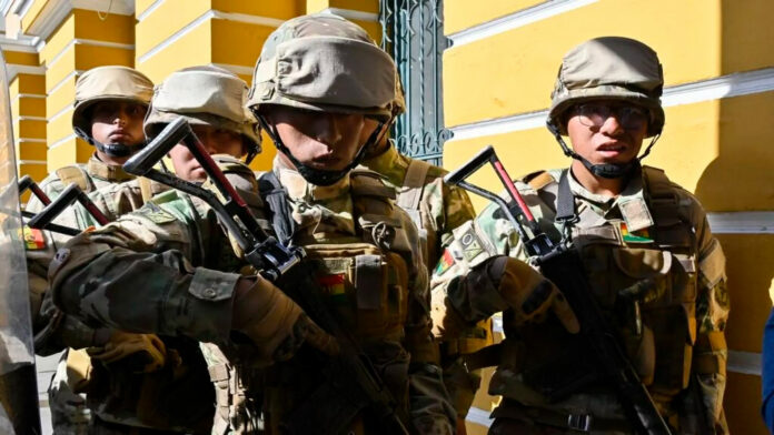 Un grupo de militares se posicionaron este 26 de junio en la céntrica Plaza Murillo y avanzaron con un vehículo blindado sobre el Palacio Quemado (Palacio de Gobierno), con el presunto objetivo de «restituir la democracia» y liberar a «presos políticos».