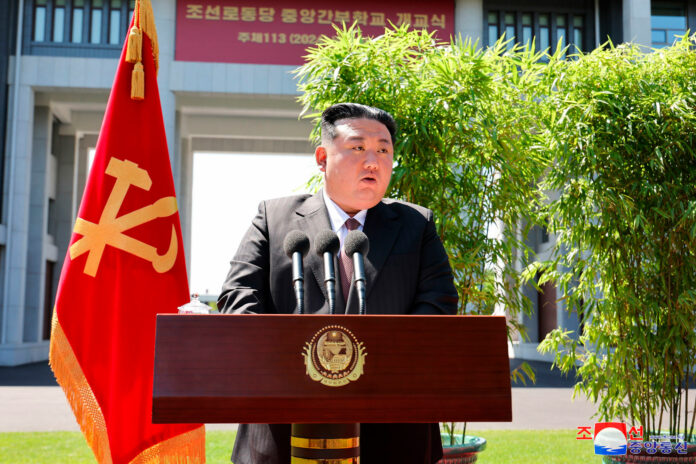 Cuando el Secretario General llegó al lugar, todos los reunidos dieron vivas a él quien edificó el supremo centro de educación, que permitirá mantener para siempre el linaje del Partido kimilsungista-kimjongilista y su infalible capacidad orientadora, y vuelve a concederles el gran honor y confianza en esta ceremonia, al igual que en el reciente acto inaugural de la escuela.