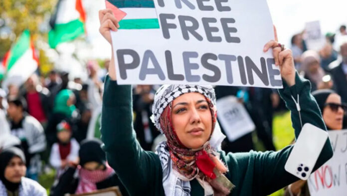 Entre los objetivos de los manifestantes se encuentran el cese al fuego en el territorio gazatí y la “libertad de Palestina”.