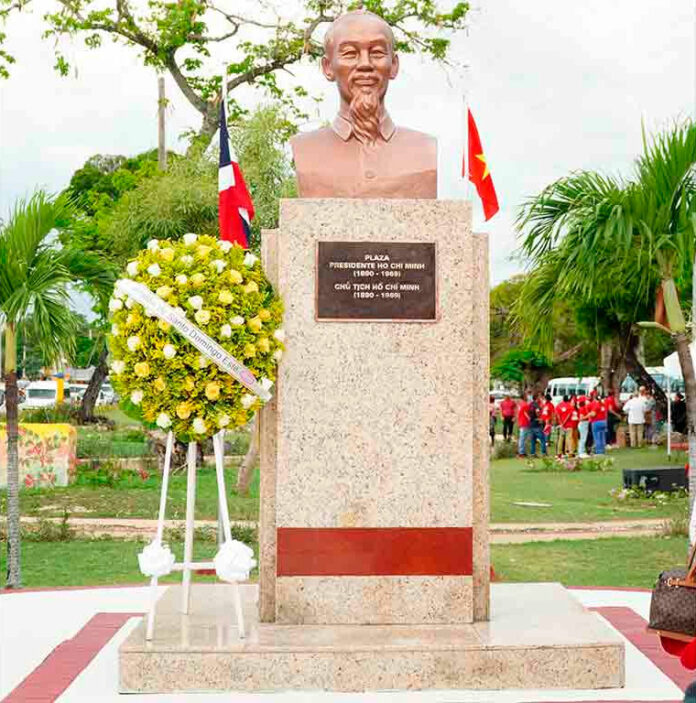 La nueva pieza, traída desde Vietnam, fue descubierta en el Paseo de la Historia, en un acto presidido por el secretario general del Movimiento Izquierda Unida (MIU) de República Dominicana, Miguel Mejía, el alcalde Manuel Jiménez, junto a diplomáticos acreditados en este país.