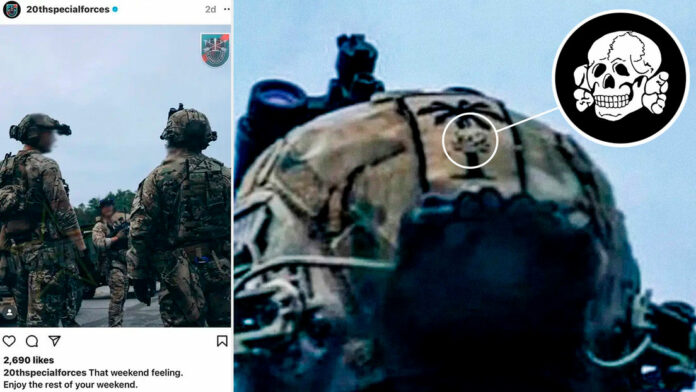 El parche incluía una calavera con dos tibias cruzadas y el contorno de una palmera, símbolos de un cuerpo de élite al servicio de Adolf Hitler. La imagen fue publicada el domingo pasado en la cuenta de Instagram del 20.º Grupo de Fuerzas Especiales con sede en Birmingham, Alabama, pero fue retirada posteriormente, cuando múltiples seguidores del perfil y algunos usuarios de Twitter prestaron atención a la insignia.