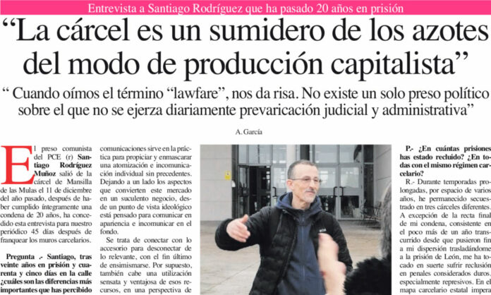 El preso comunista del PCE(r) Santiago Rodríguez Muñoz salió de la cárcel de Mansilla de las Mulas el 11 de diciembre del año pasado, después de haber cumplido íntegramente una condena de 20 años, ha concedido esta entrevista para nuestro periódico 45 días después de franquear los muros carcelarios.