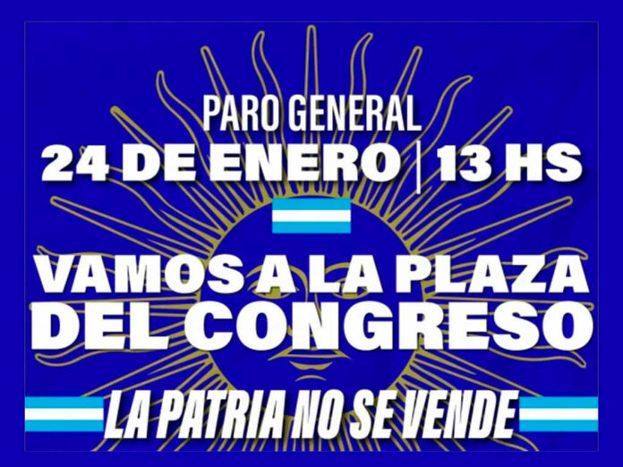 Las acciones, convocadas por la Confederación General del Trabajo, tendrán como lema La Patria no se vende y ocurrirán a 45 días del inicio del mandato del líder de La Libertad Avanza.