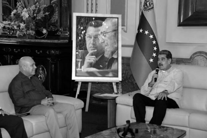 Yuniel Labacena Romero (Granma).— «Estoy seguro, más que seguro, que, uniendo nuestras experiencias, nuestras capacidades, nuestros esfuerzos, nosotros vamos a llevar a un nivel superior el proyecto original del gran Bolívar, del Apóstol José Martí y de los gigantes Fidel y Chávez; ese proyecto original es el que nosotros reivindicamos como gran bandera invencible de los pueblos de América Latina y el Caribe», aseguró el presidente de la República Bolivariana de Venezuela, Nicolás Maduro, en su encuentro, ayer, con el miembro del Buró Político y secretario de Organización del Comité Central del Partido Comunista de Cuba, Roberto Morales Ojeda.