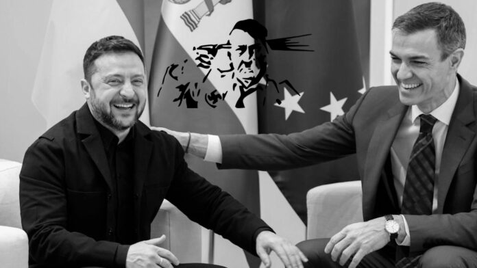 El presidente de Ucrania, Volodímir Zelenski, y el presidente del Gobierno español, Pedro Sánchez, han escenificado este miércoles en Madrid la buena sintonía existente entre el gobierno neonazi y el Ejecutivo “socialista” (PSOE/Sumar y PCE).