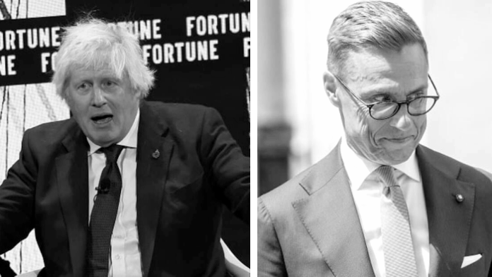 El ex primer ministro británico Boris Johnson, y el presidente finlandés, Alexander Stubb. | Jemal Countess / Stringer / Antonio Masiello / Contributor