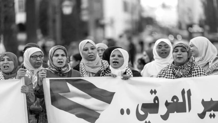 Personas participan en una manifestación en solidaridad con el pueblo palestino este viernes, en Rabat (Marruecos). Foto: EFE.