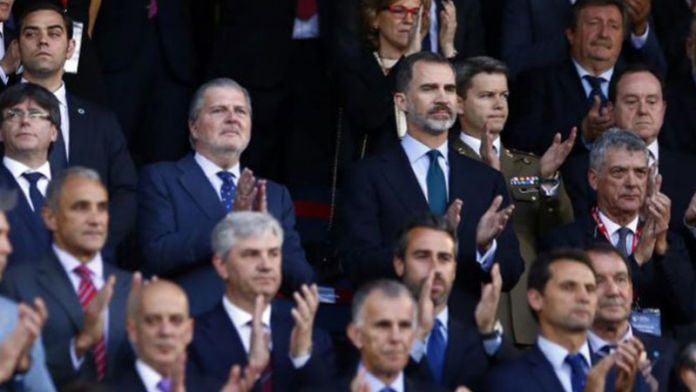 Estruendosa, y ya acostumbrada, pitada al himno del Clan Borbónico recibida con gesto adusto por el actual jefe del mismo.