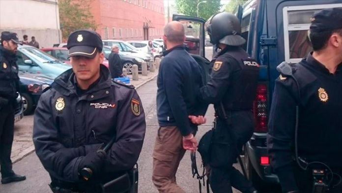 La Policía Nacional española detiene al consejero municipal de Podemos Jorge Aranda y a un compañero activista cuando impedían el desahucio de una familia en Madrid.