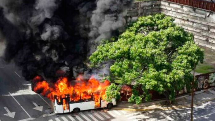 “Delincuentes contratados por la Derecha Terrorista incendian una unidad de transporte público en la Av. Francisco de Miranda, Altamira”, informó el ministro del Poder Popular para Relaciones Interiores, Justicia y Paz, Néstor Reverol.