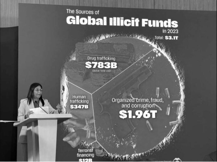 La funcionaria venezolana detalló que el crimen organizado genera en la actualidad entre 1,6 billones a 2,2 billones de dólares anuales por su actividad criminal en EE.UU. a través de redes delictivas que están «incrustadas en el territorio estadounidense para garantizar el ciclo» criminal que mantiene «destruida a la sociedad» de ese país, como ocurre con el caso del fentanilo y otras drogas fuertes como la cocaína y la heroína, que causan la muerte de decenas de miles de personas por sobredosis.